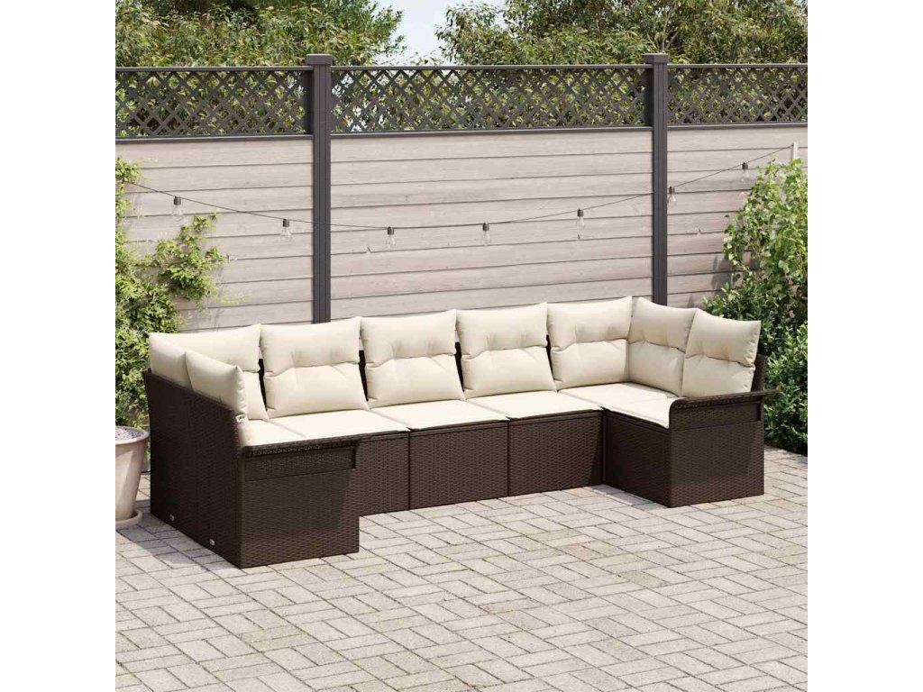 Sada zahradních pohovek s polštářem 7 pcs Hnědá Poly ratan 3354177
