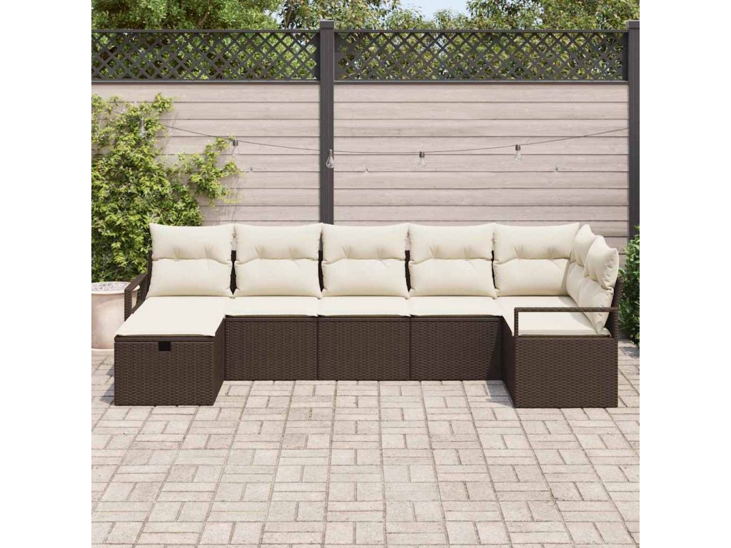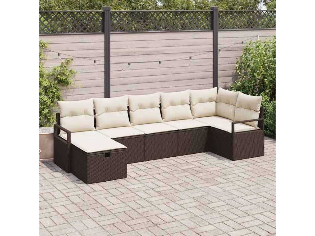 Sada zahradních pohovek s polštářem 7 pcs Hnědá Poly ratan 3360529