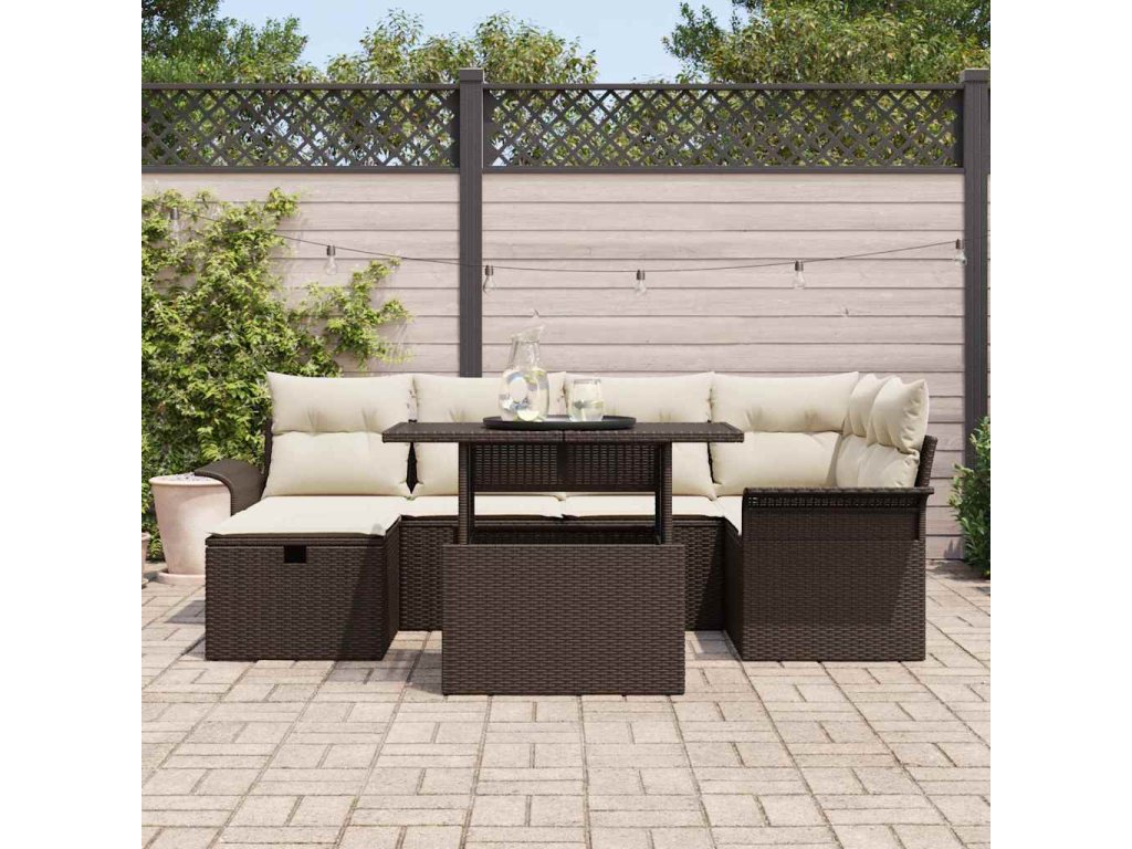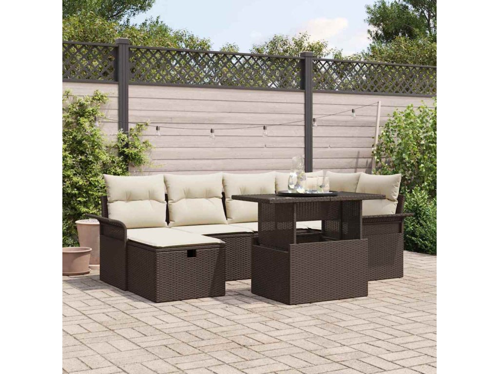 Sada zahradních pohovek s polštářem 7 pcs Hnědá Poly ratan 3361007