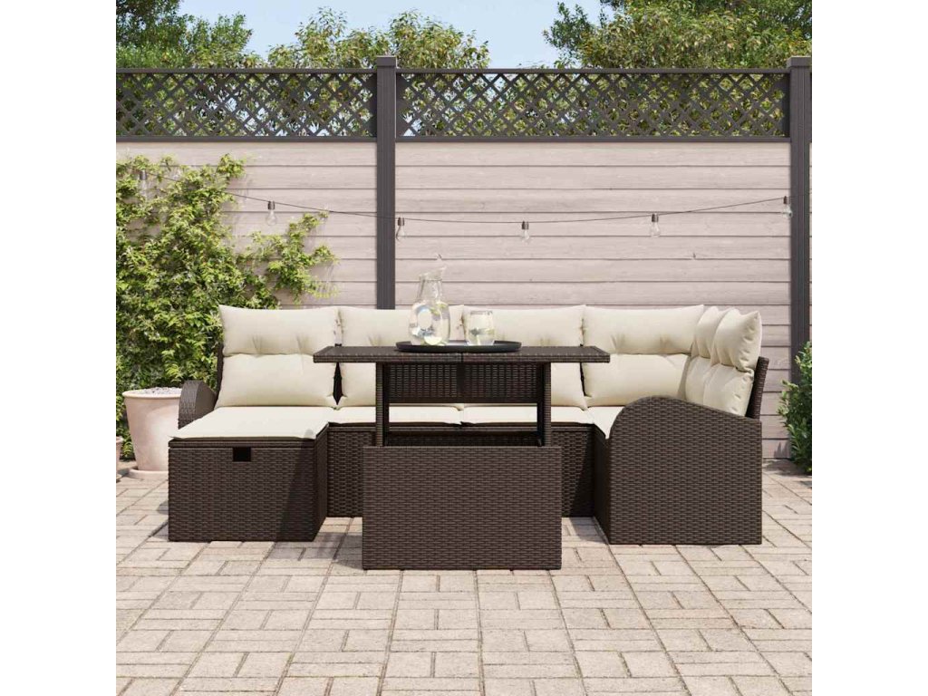 Sada zahradních pohovek s polštářem 7 pcs Hnědá Poly ratan 3361087