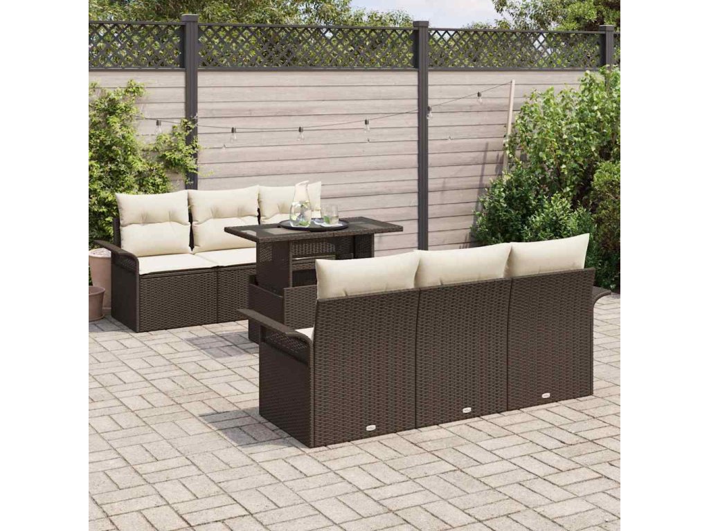 Sada zahradních pohovek s polštářem 7 pcs Hnědá polyratan 3348204