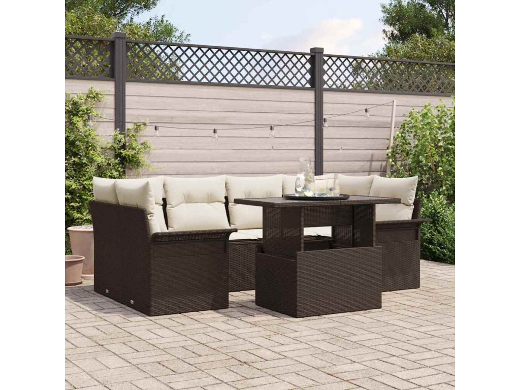 Sada zahradních pohovek s polštářem 7 pcs Hnědá polyratan 3348214
