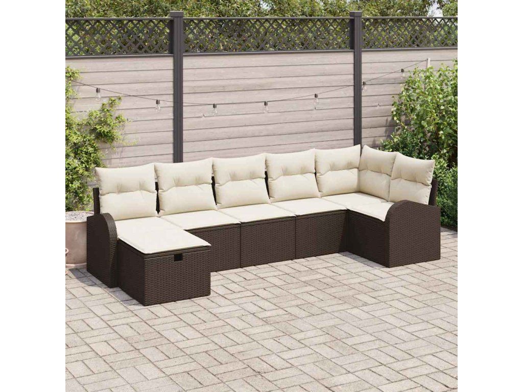 Sada zahradních pohovek s polštářem 7 pcs Hnědá polyratan 3360429