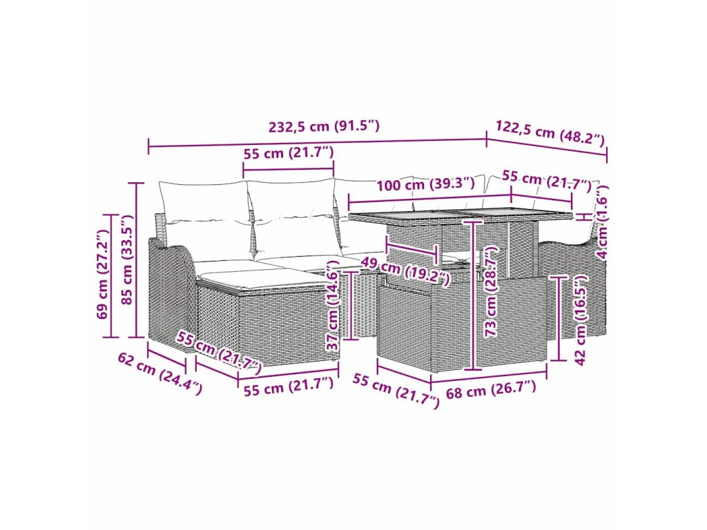 - Pohodlí a ergonomie Polstry sady gauče jsou navržené tak, aby jsi si venku pohodlně odpočinul, a jsou odolné vůči počasí. Každý kus má ergonomická záda a zaoblené opěrky rukou, takže se skvěle hodí na odpočinek nebo vychutnání jídla venku.