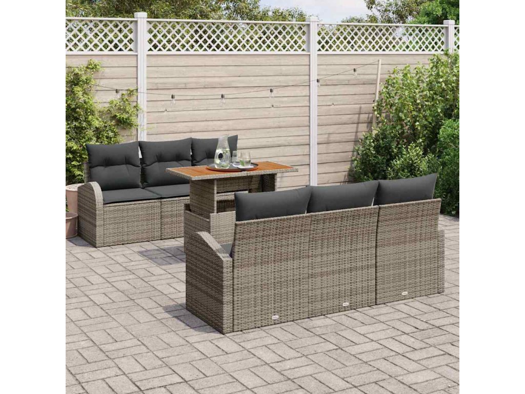 Sada zahradních pohovek s polštářem 7 pcs Šedá 3349530