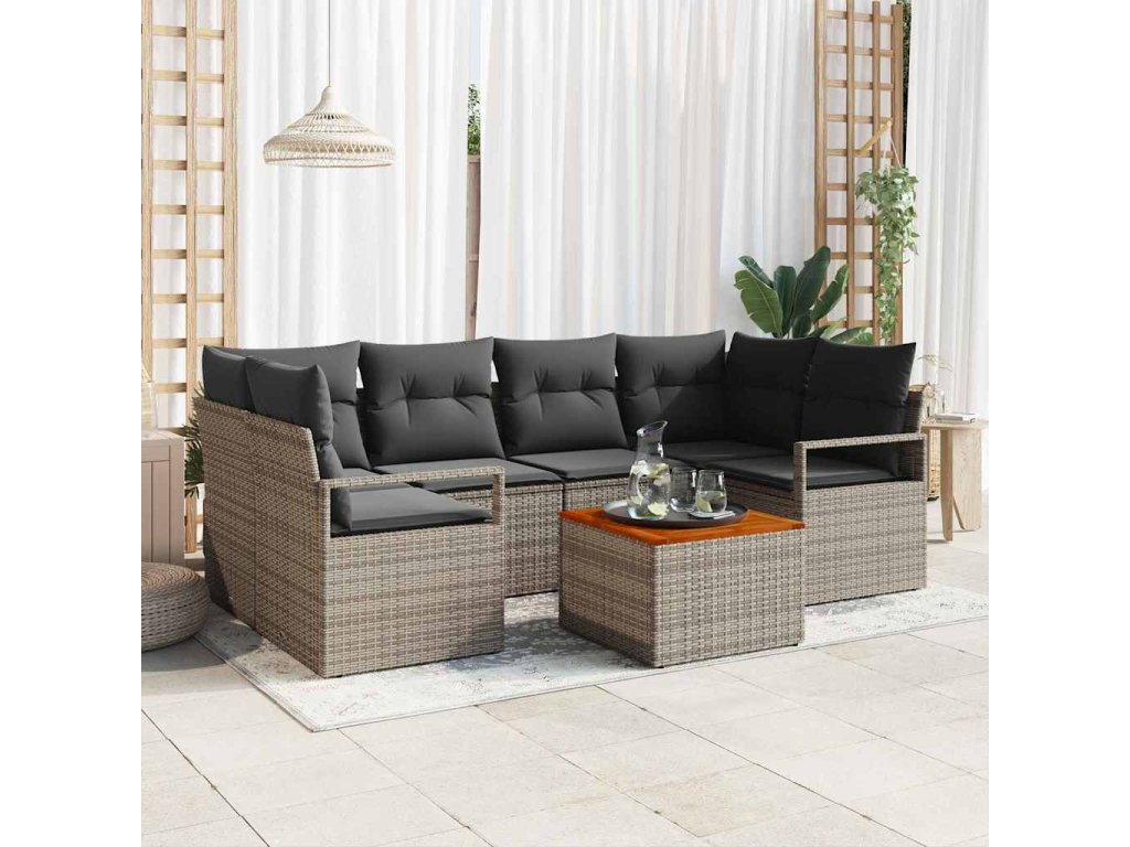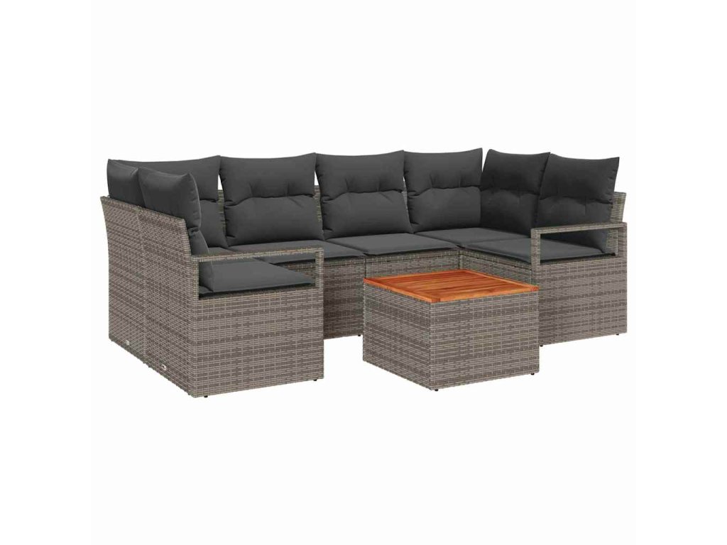 Sada zahradních pohovek s polštářem 7 pcs Šedá Poly ratan 3347657