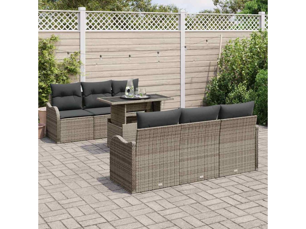 Sada zahradních pohovek s polštářem 7 pcs Šedá Poly ratan 3348385