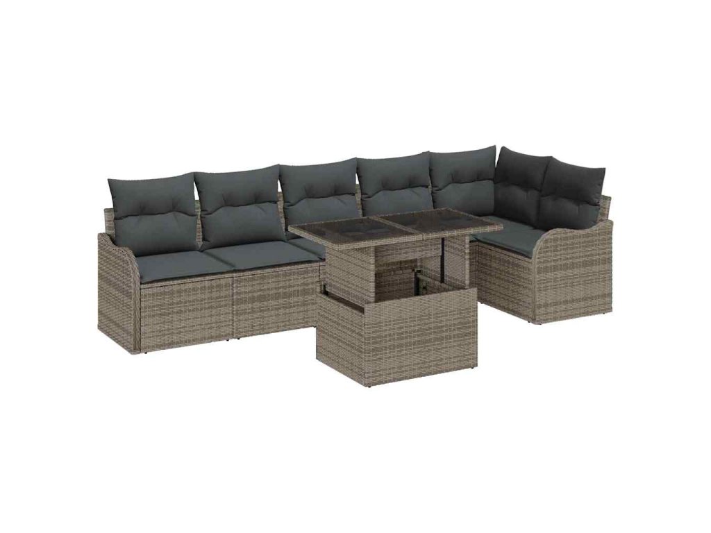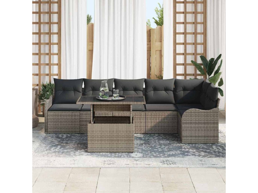 Sada zahradních pohovek s polštářem 7 pcs Šedá Poly ratan 3348475