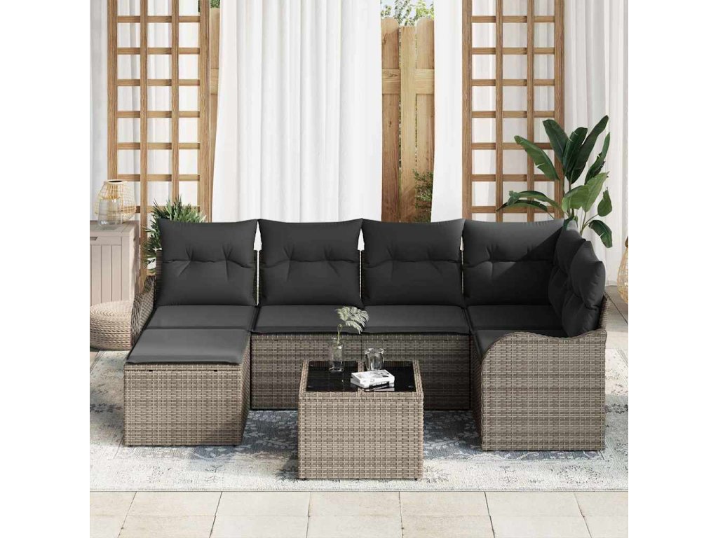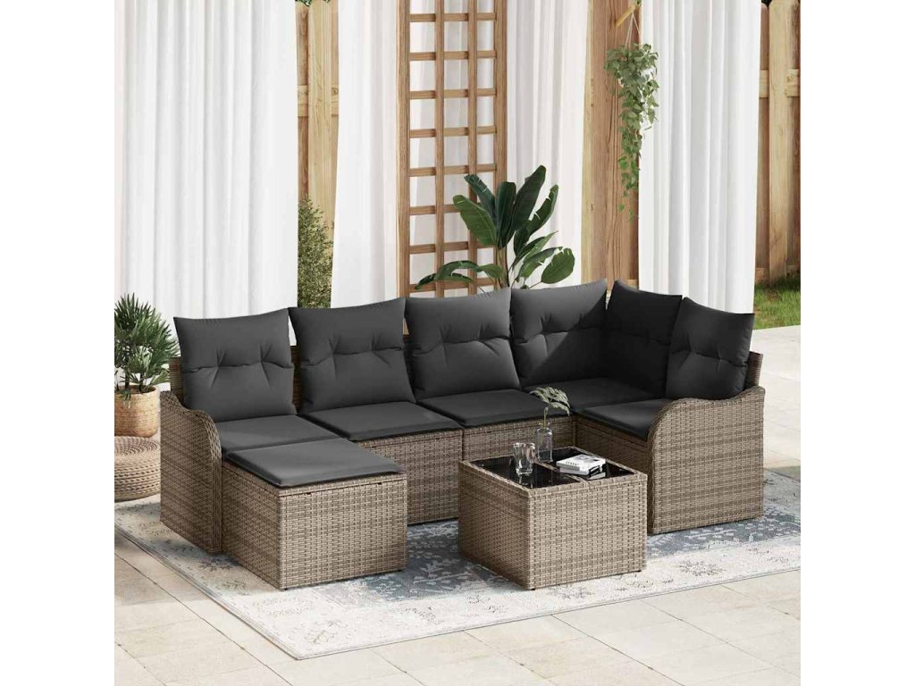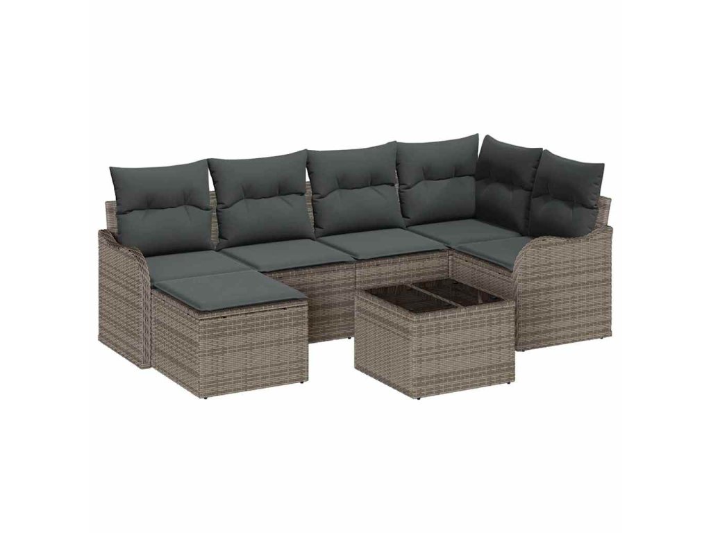 Sada zahradních pohovek s polštářem 7 pcs Šedá Poly ratan 3354448