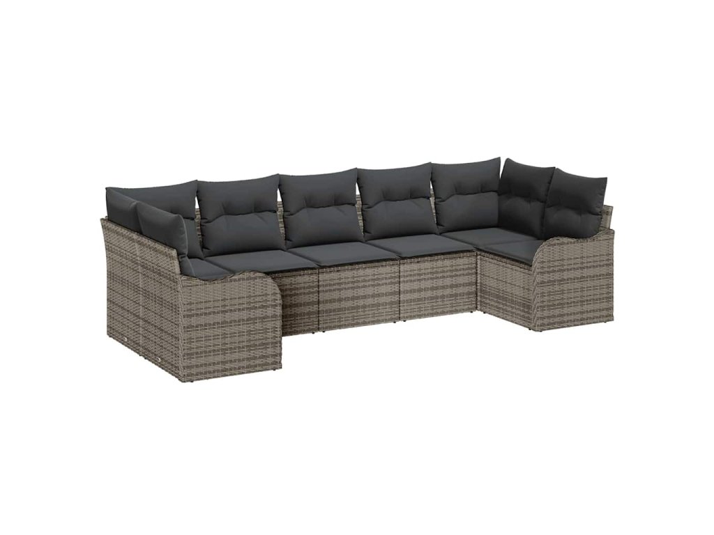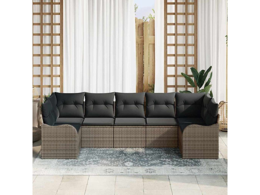 Sada zahradních pohovek s polštářem 7 pcs Šedá Poly ratan 3354518