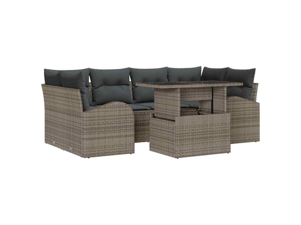 Sada zahradních pohovek s polštářem 7 pcs Šedá Poly Ratan 3357312