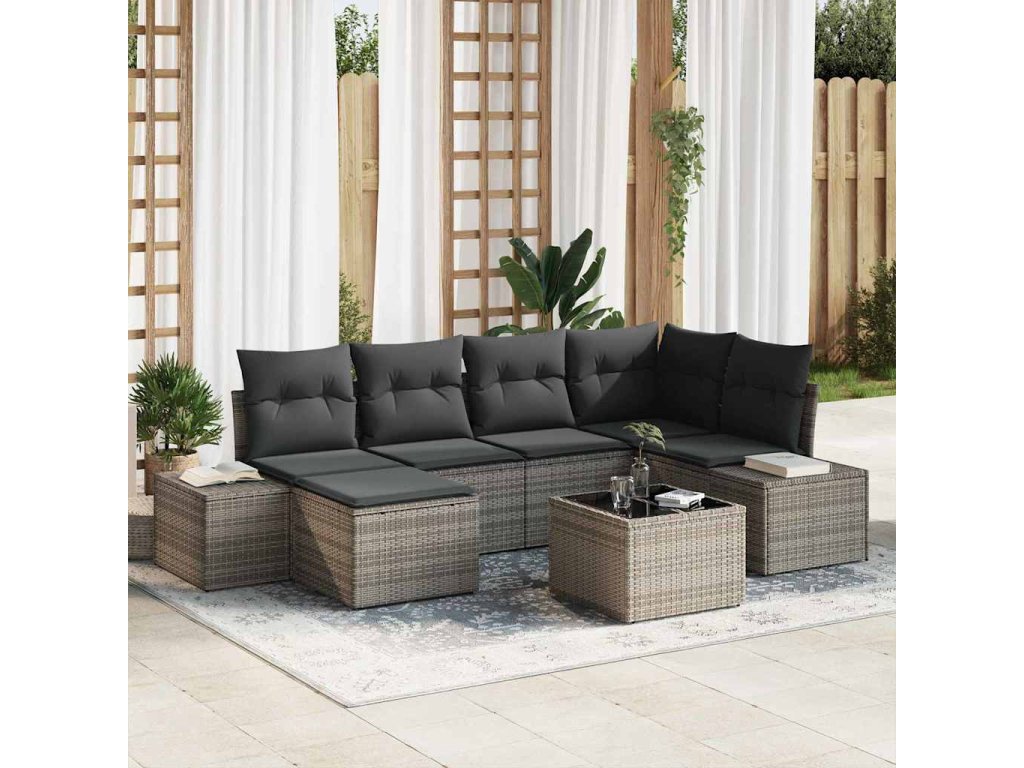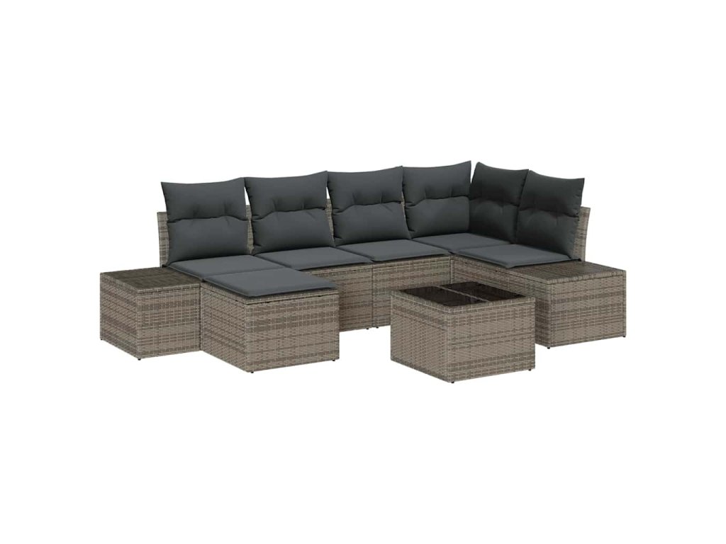 Sada zahradních pohovek s polštářem 7 pcs Šedá polyratan 3347139