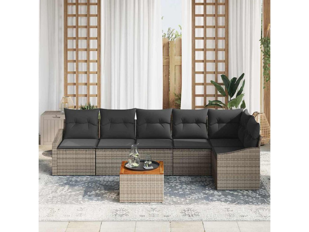 Sada zahradních pohovek s polštářem 7 pcs Šedá polyratan 3347839