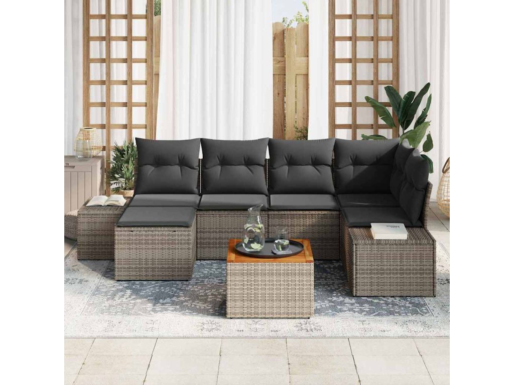 Sada zahradních pohovek s polštářem 7 pcs Šedá polyratan 3347979