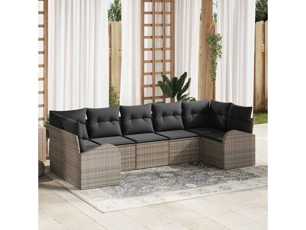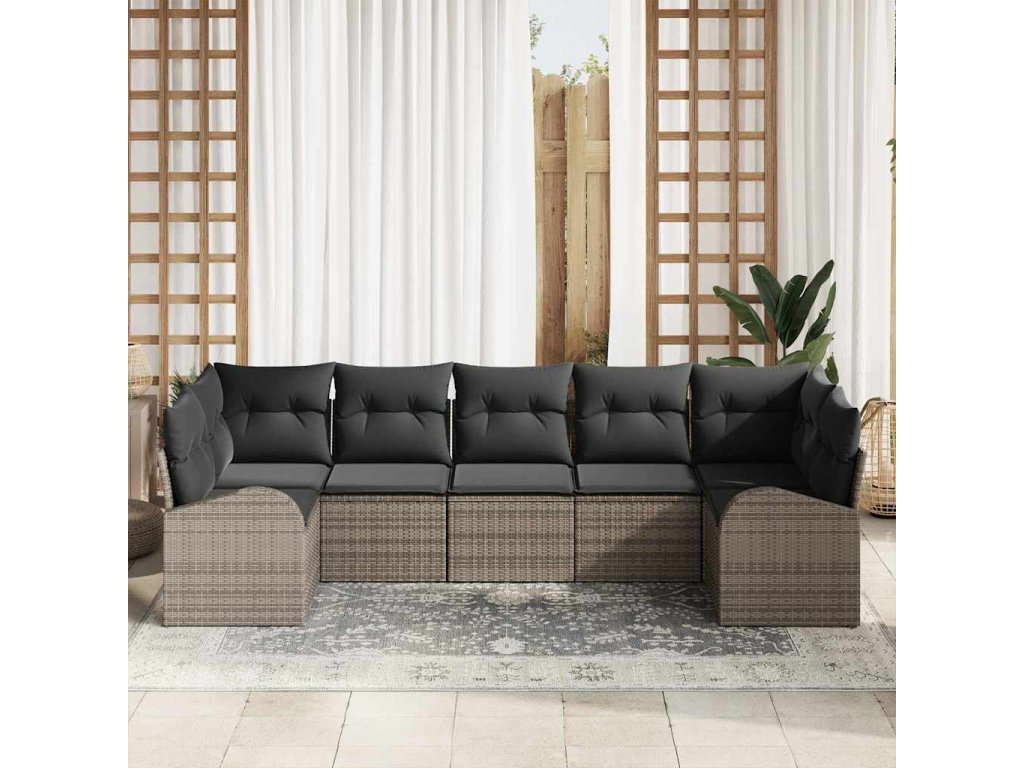 Sada zahradních pohovek s polštářem 7 pcs Šedá polyratan 3354858