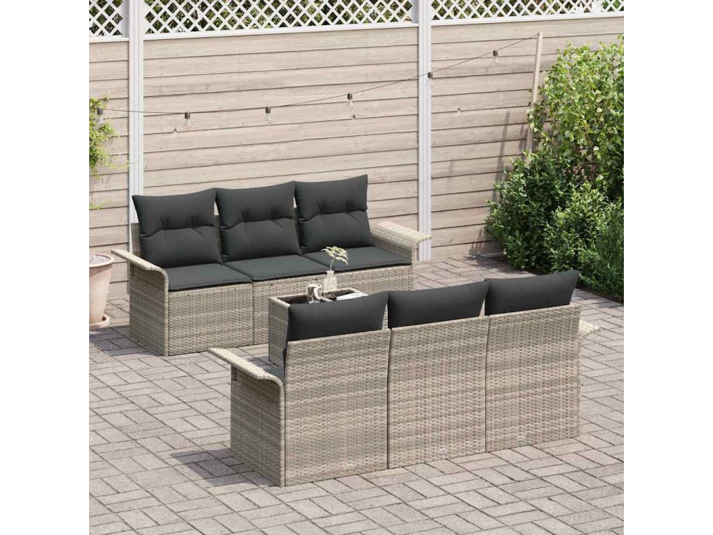Sada zahradních pohovek s polštářem 7 pcs Světle šedá polyratan 3345252