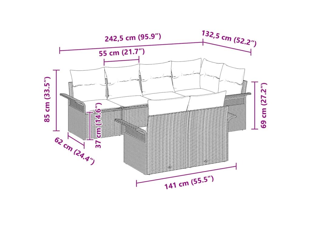 - Doporučené použití: Ideální pro zahrady, patia nebo terasy, set vytvoří útulný prostor venku. Ať už pořádáte hostinu nebo si užíváte klidné chvíle, modulární design a pohodlné sezení se hodí pro každou příležitost.