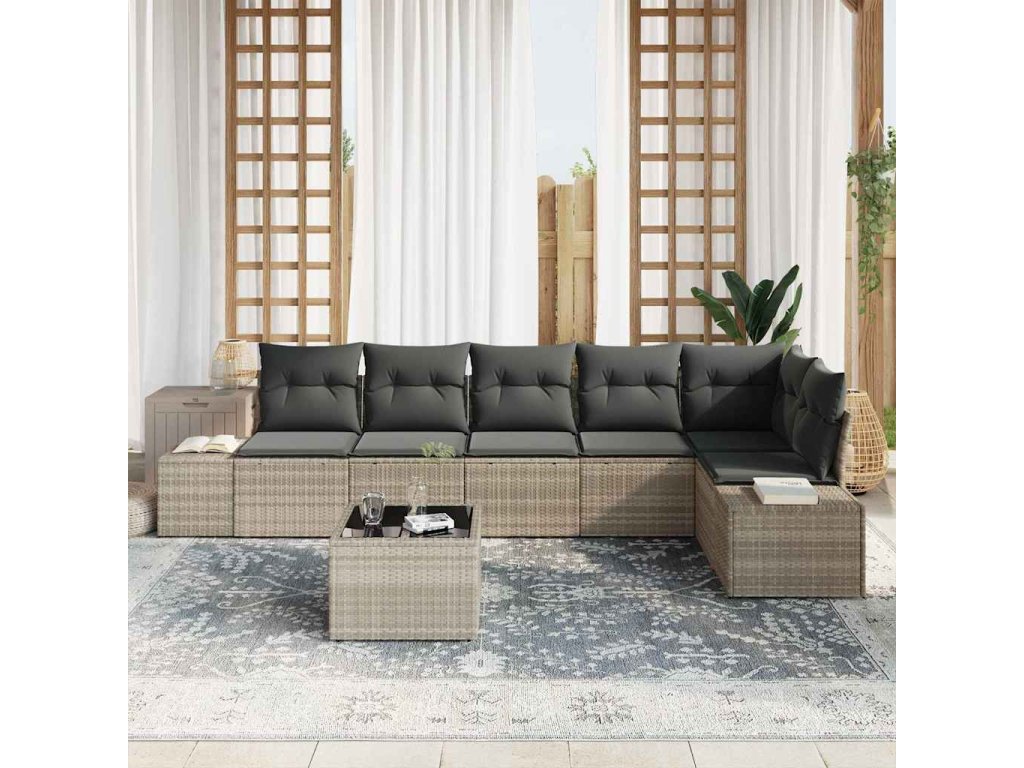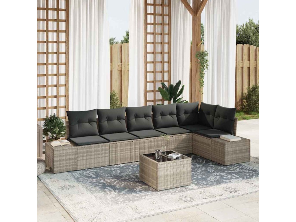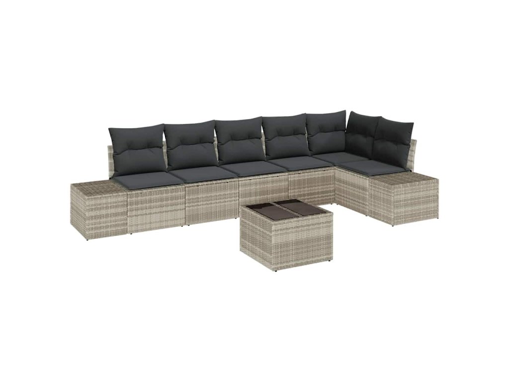 Sada zahradních pohovek s polštářem 7 pcs Světle šedá polyratan 3347092