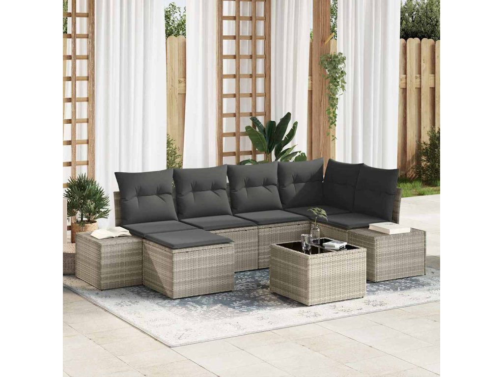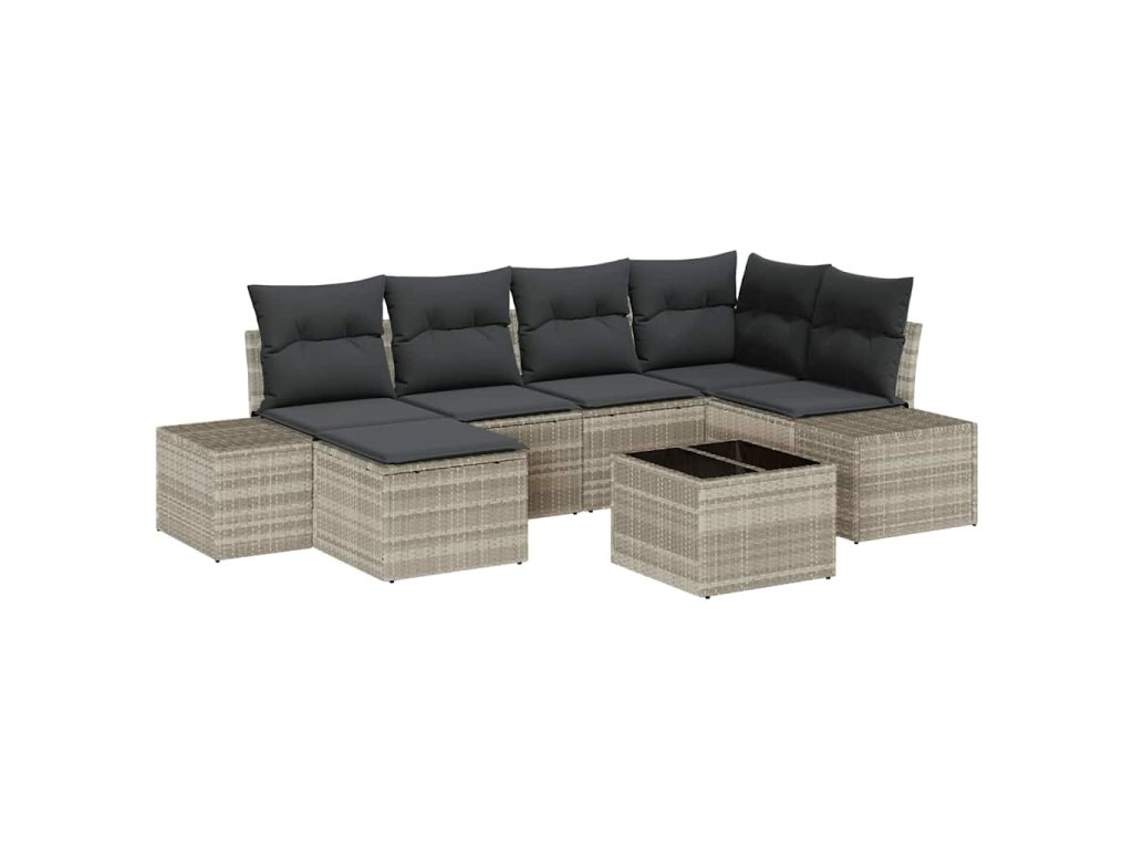 Sada zahradních pohovek s polštářem 7 pcs Světle šedá polyratan 3347142