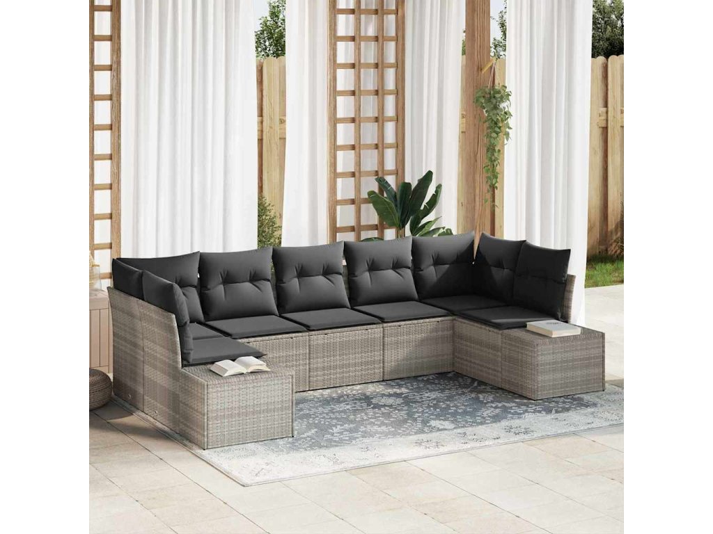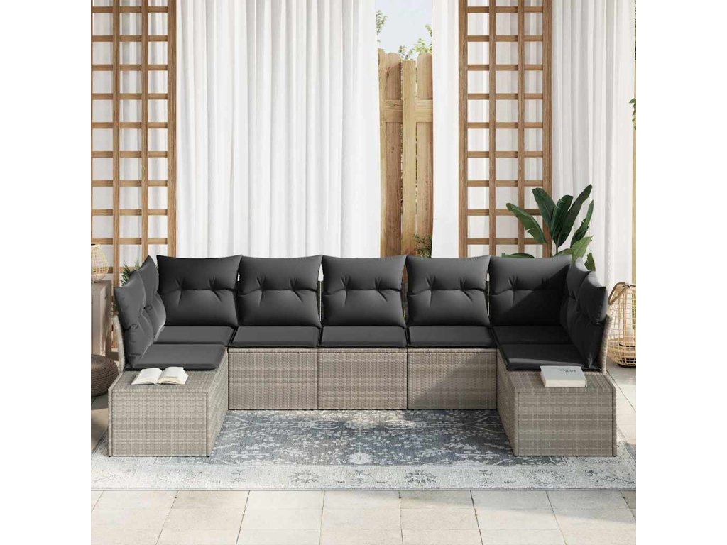 Sada zahradních pohovek s polštářem 7 pcs Světle šedá polyratan 3347212