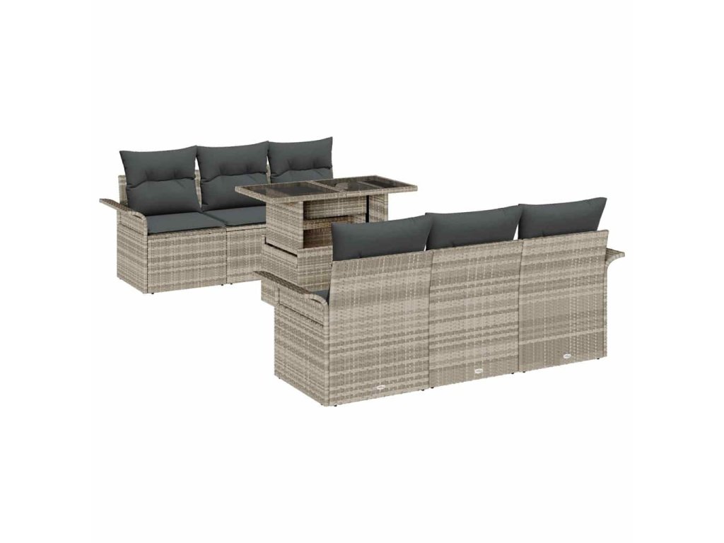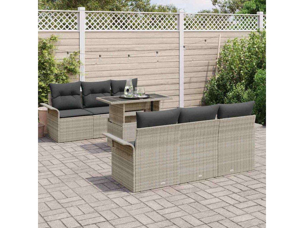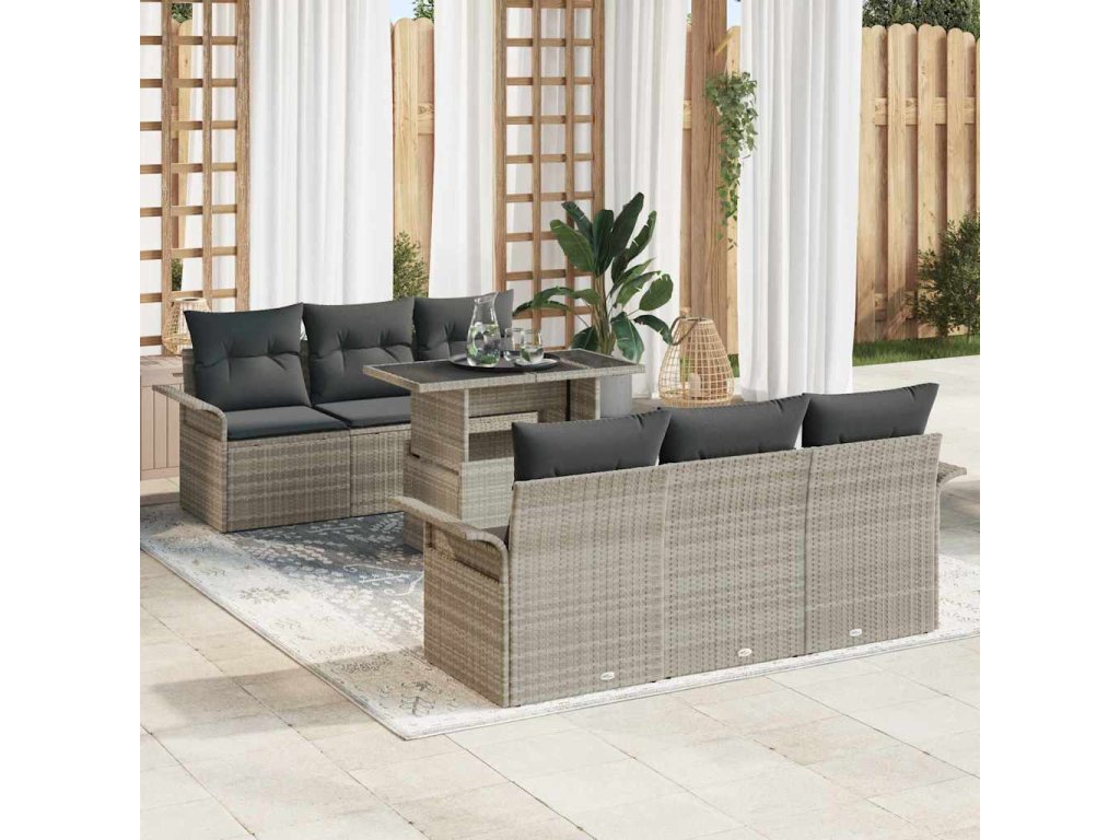 Sada zahradních pohovek s polštářem 7 pcs Světle šedá polyratan 3348208
