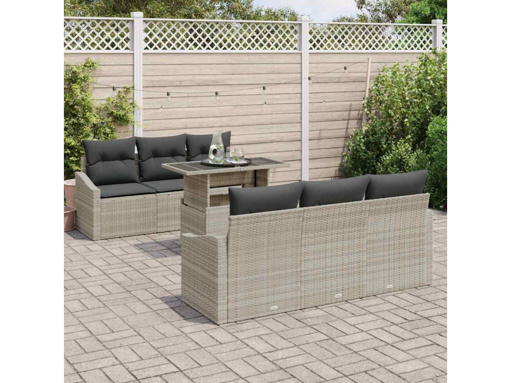 Sada zahradních pohovek s polštářem 7 pcs Světle šedá polyratan 3348928