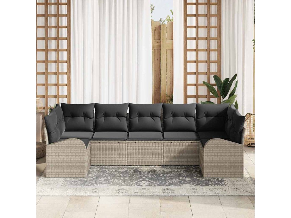 Sada zahradních pohovek s polštářem 7 pcs Světle šedá polyratan 3354861