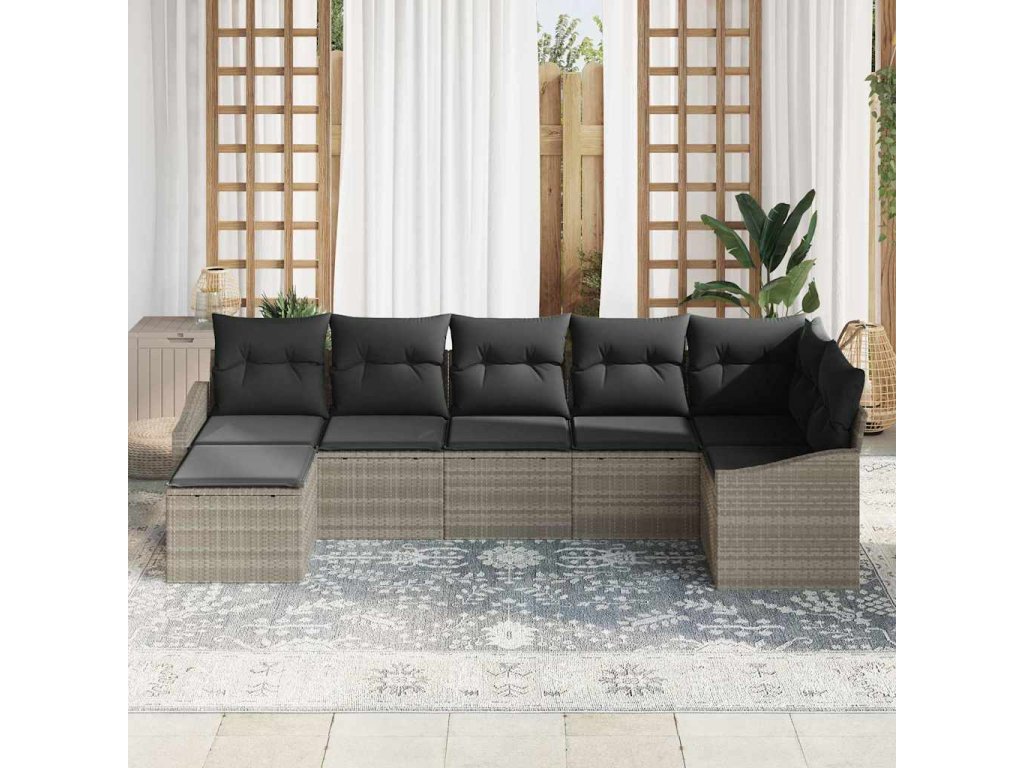 Sada zahradních pohovek s polštářem 7 pcs Světle šedá polyratan 3355481