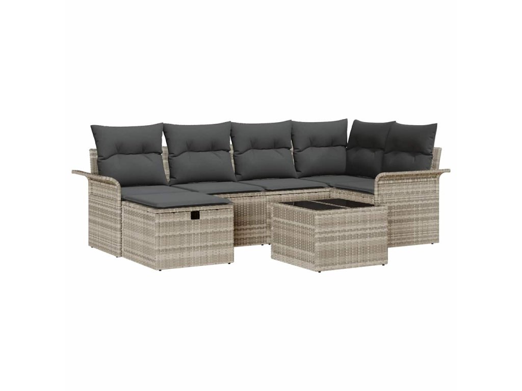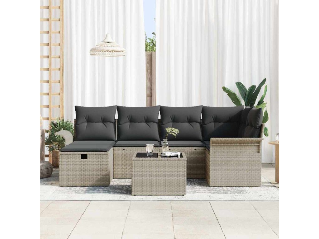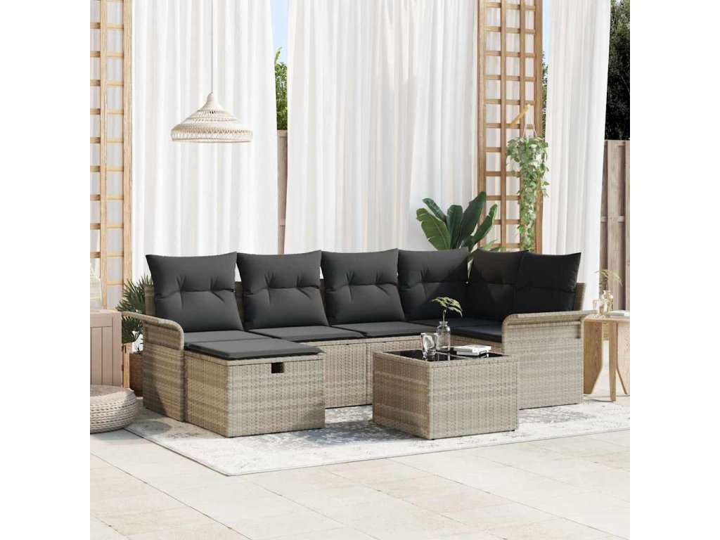 Sada zahradních pohovek s polštářem 7 pcs Světle šedá polyratan 3358891