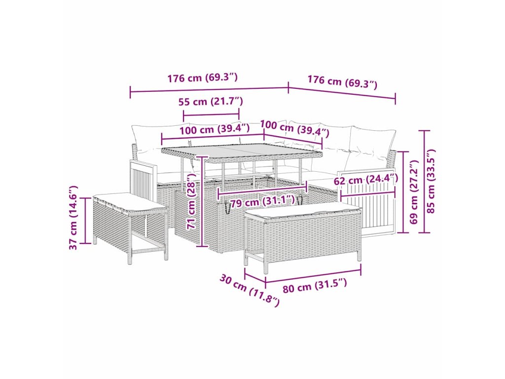 - Doporučené použití: Tato pohovková souprava je ideální na jaro a léto, pohodlně se hodí na terasy, zahrady nebo jiné venkovní prostory, kde se dají pořádat setkání, relaxovat nebo stolovat pod širým nebem.