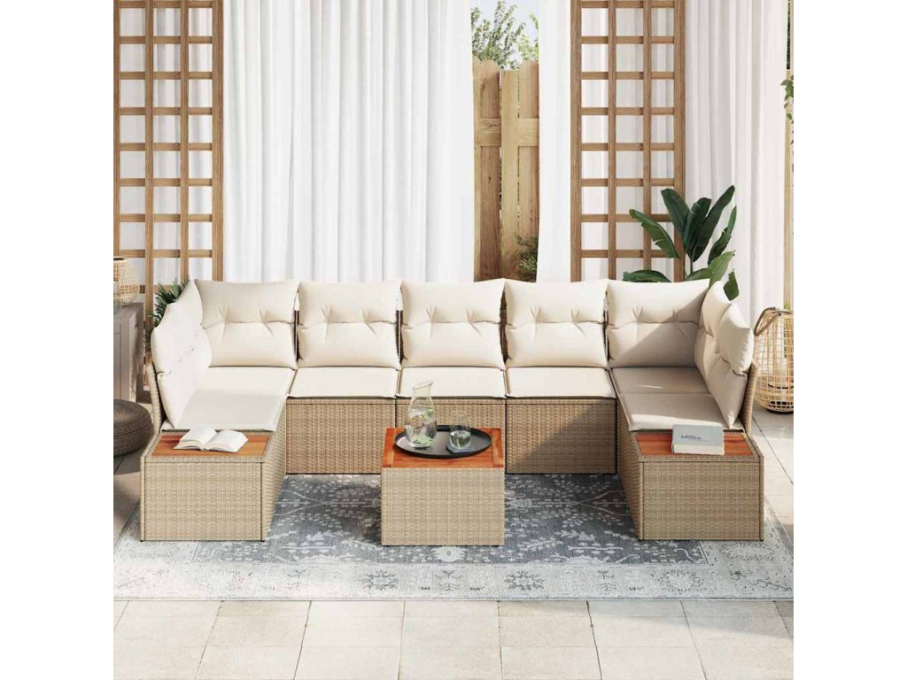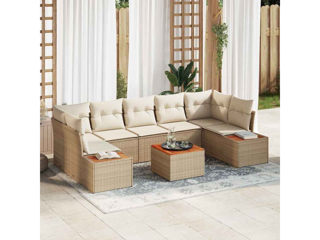 Sada zahradních pohovek s polštářem 8 pcs Béžová Poly ratan 3348047
