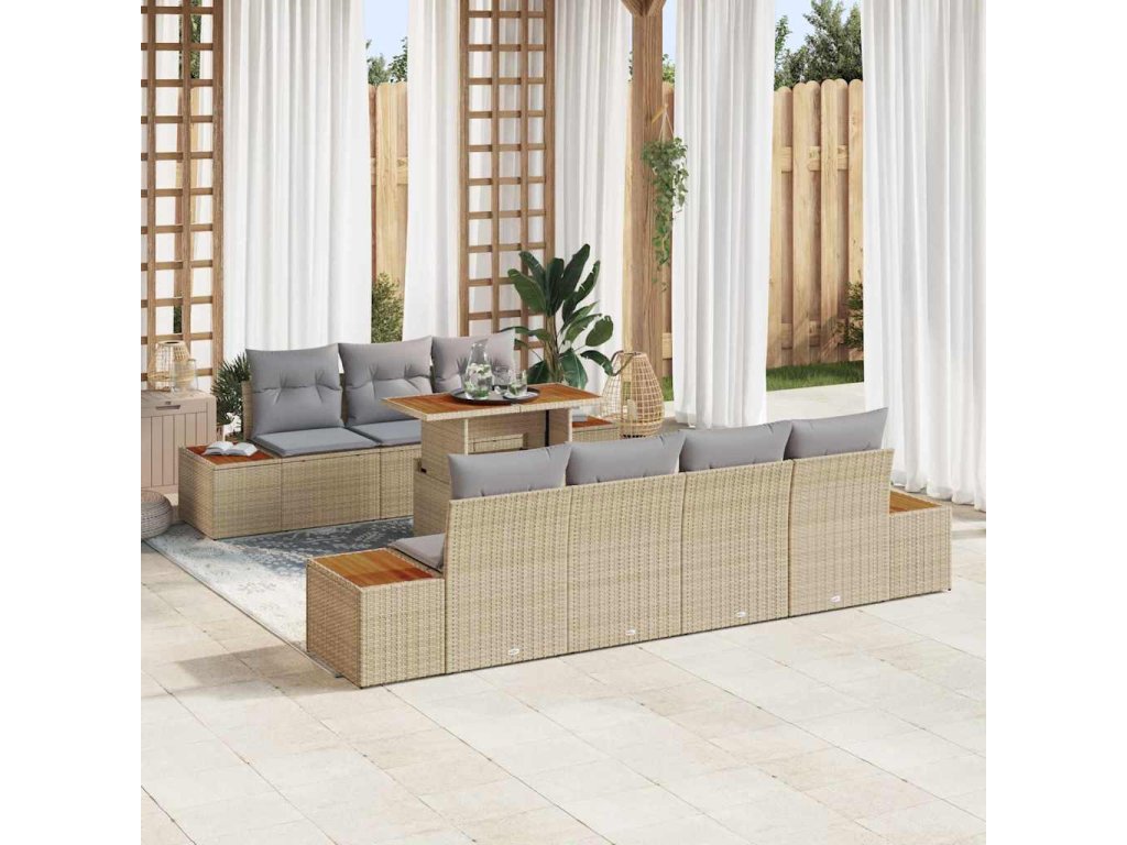 Sada zahradních pohovek s polštářem 8 pcs Béžová Poly ratan 3350042