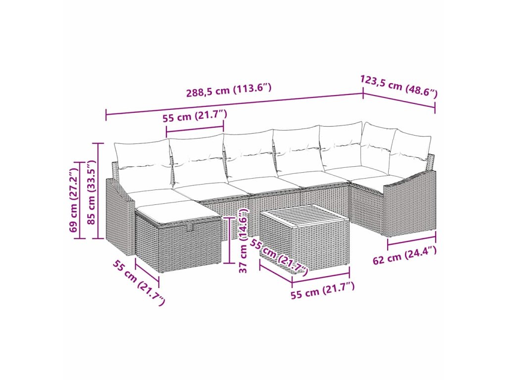 Sada zahradních pohovek s polštářem 8 pcs Béžová Poly ratan 3359574