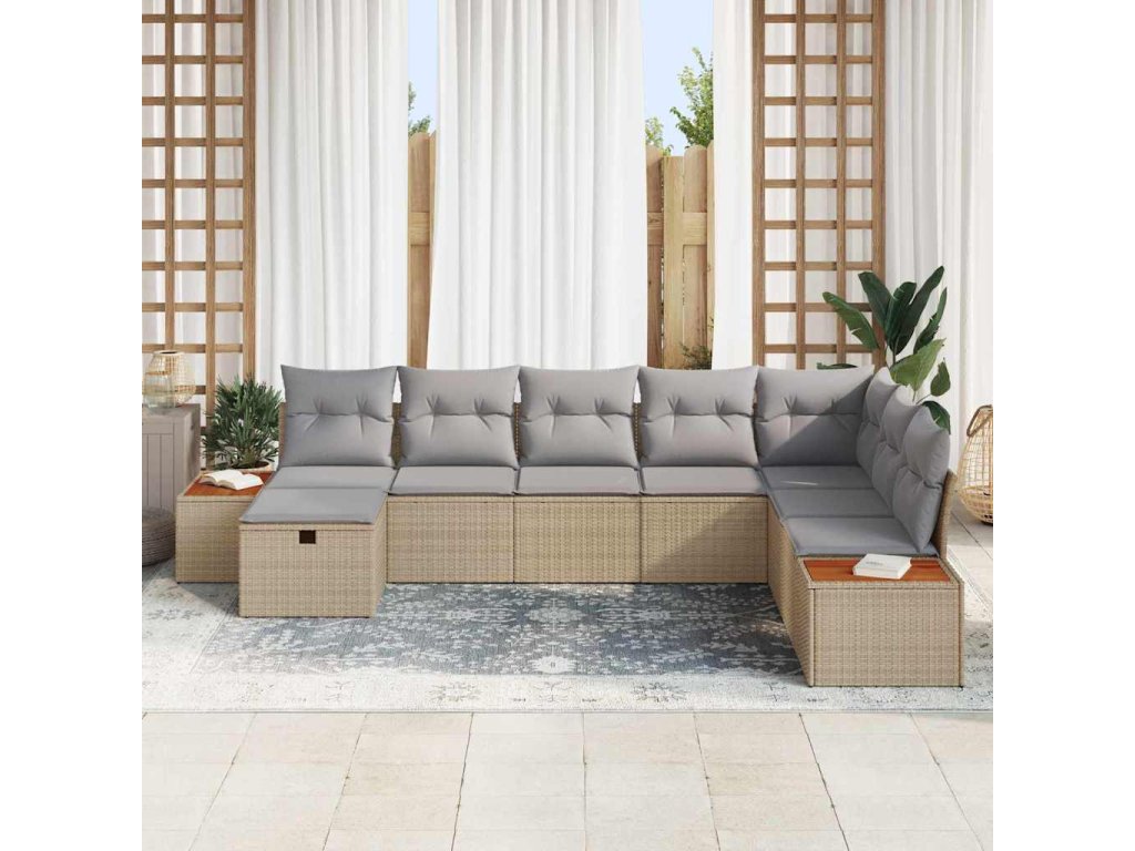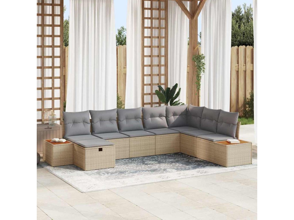 Sada zahradních pohovek s polštářem 8 pcs Béžová Poly ratan 3359657