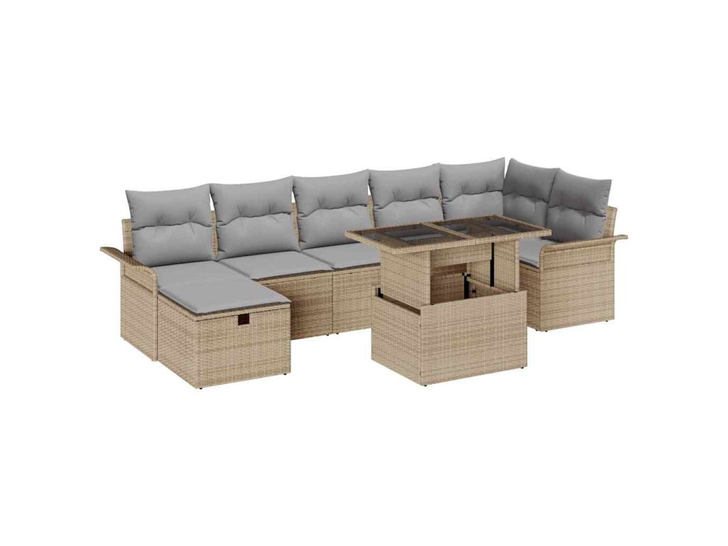 Sada zahradních pohovek s polštářem 8 pcs Béžová Poly ratan 3359687