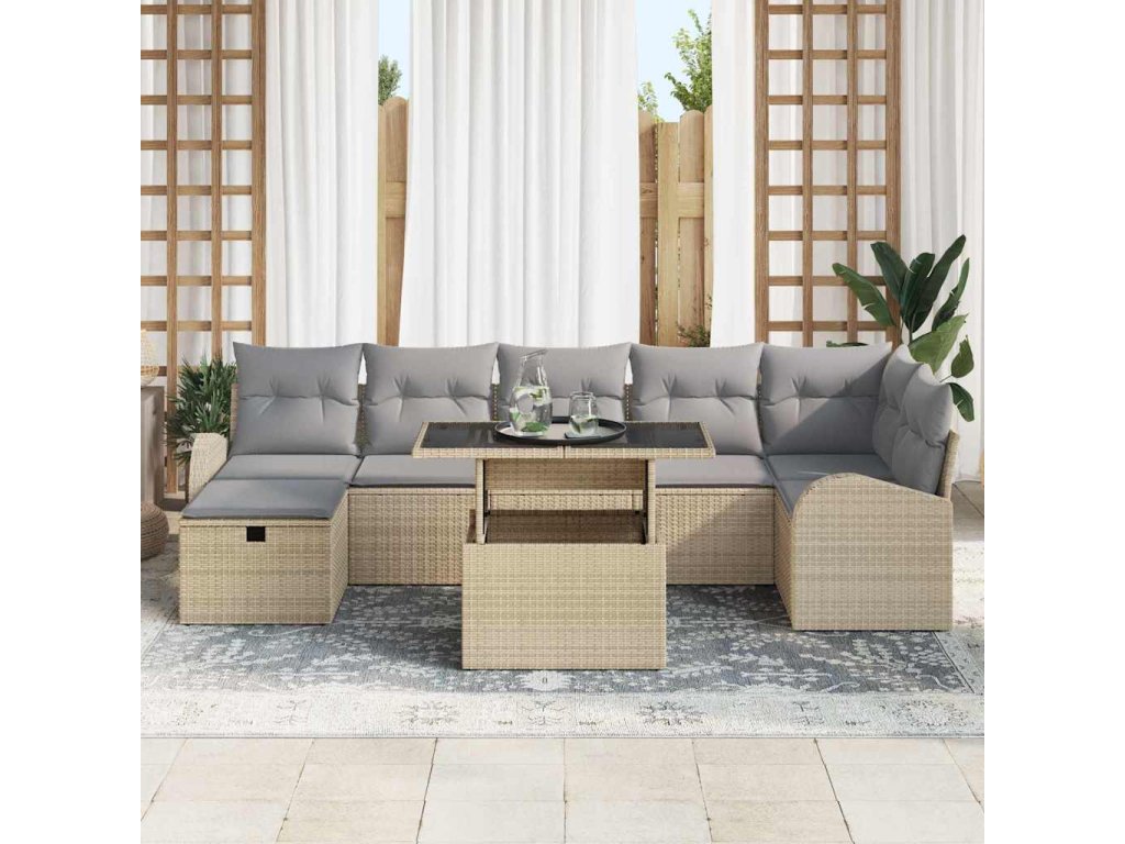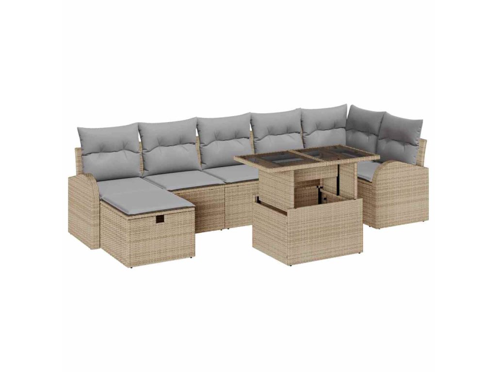 Sada zahradních pohovek s polštářem 8 pcs Béžová Poly ratan 3359767