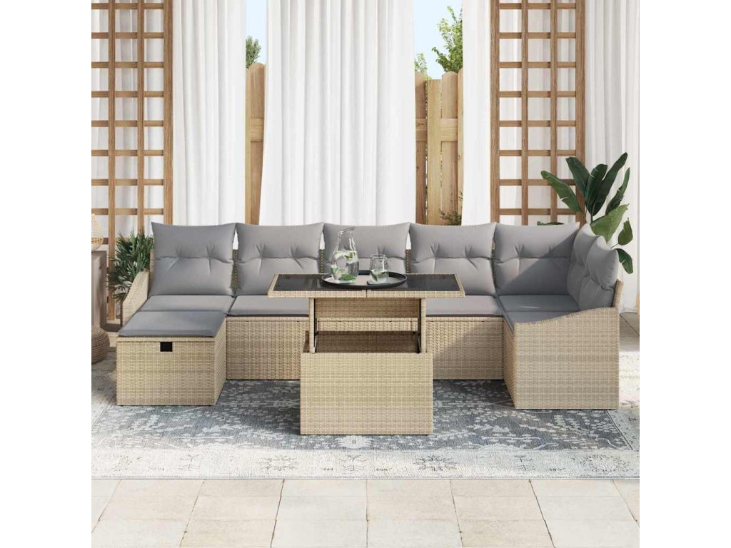 Sada zahradních pohovek s polštářem 8 pcs Béžová Poly ratan 3359847