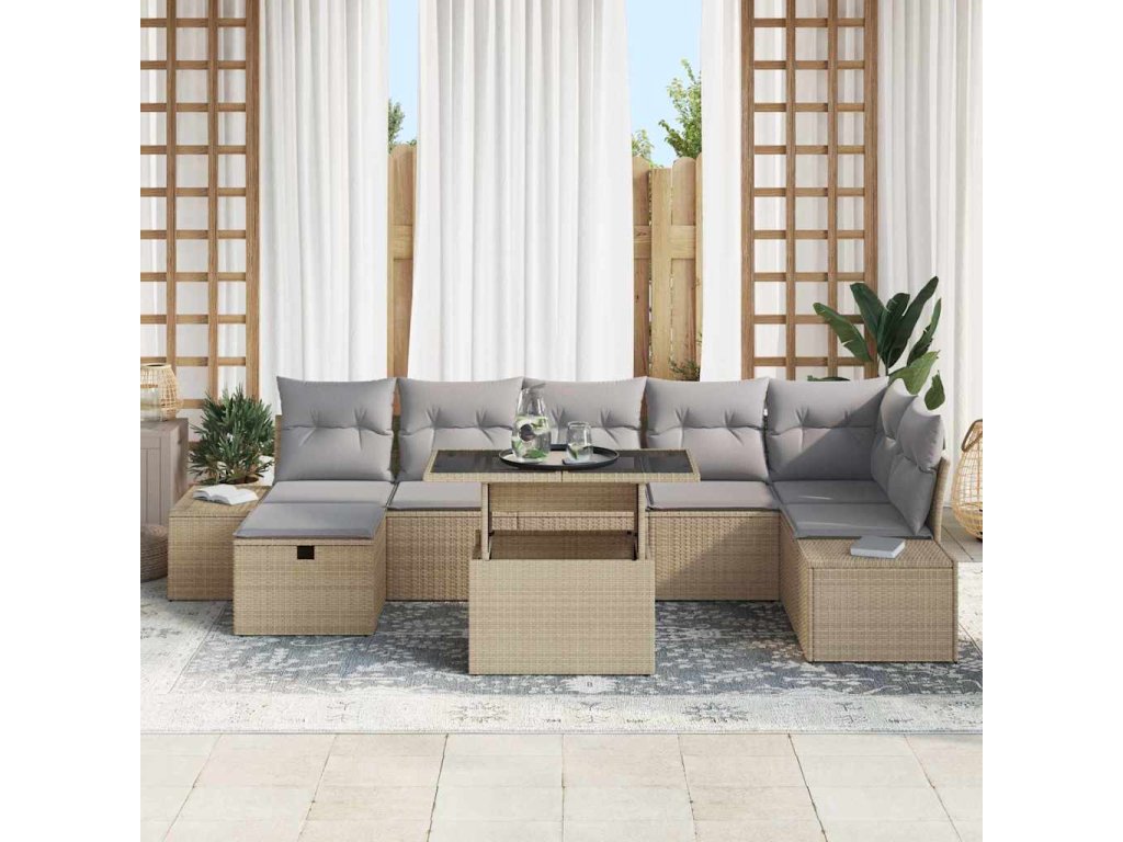 Sada zahradních pohovek s polštářem 8 pcs Béžová Poly ratan 3359887