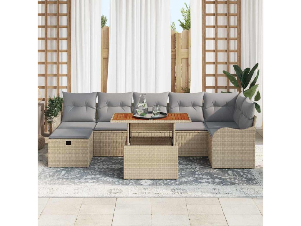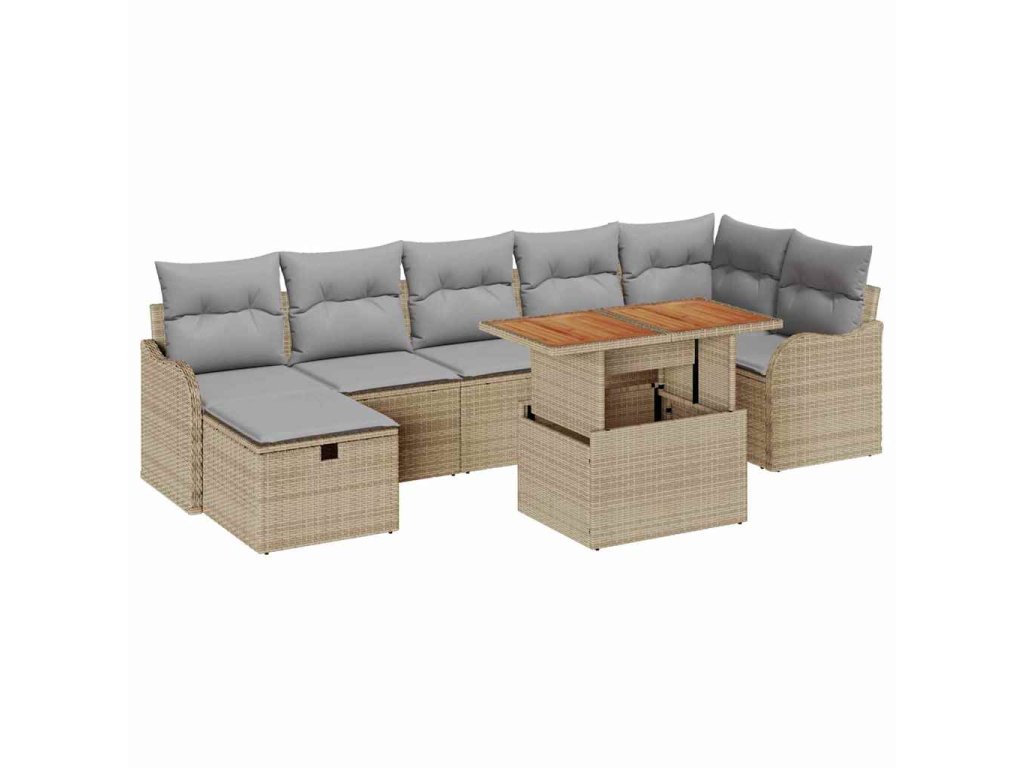 Sada zahradních pohovek s polštářem 8 pcs Béžová Poly ratan 3359948