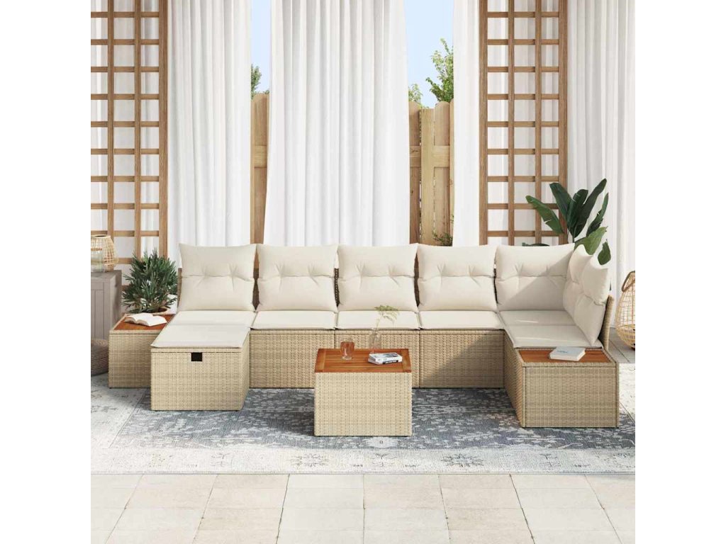 Sada zahradních pohovek s polštářem 8 pcs Béžová Poly ratan 3360980