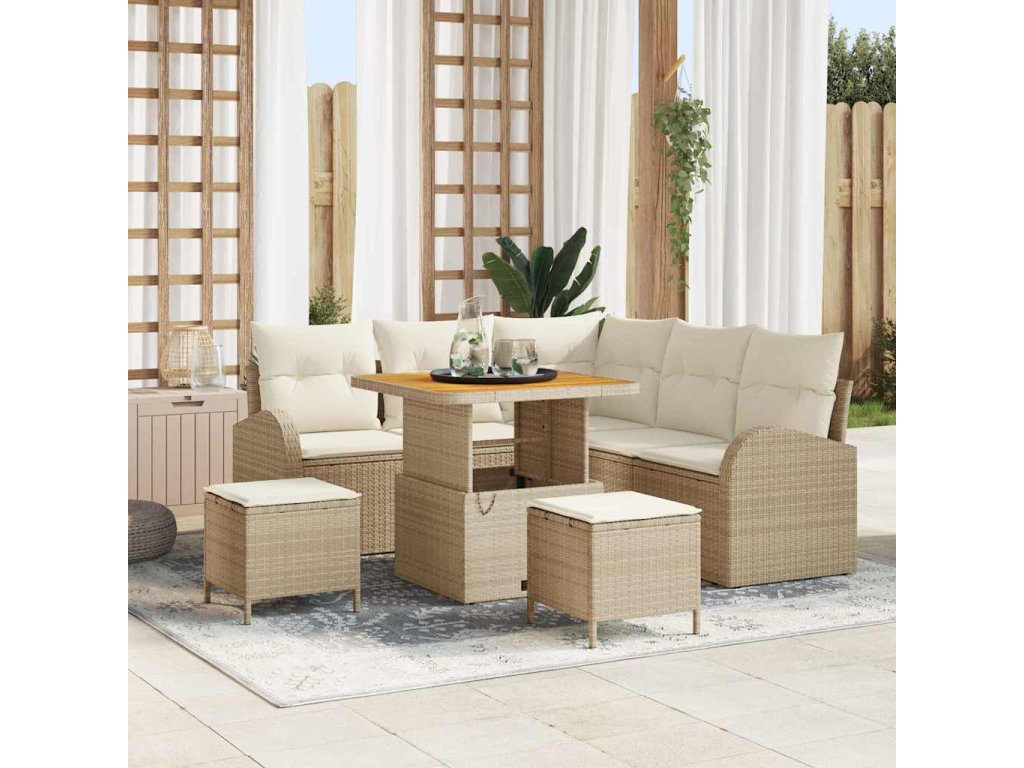 Sada zahradních pohovek s polštářem 8 pcs Béžová Poly ratan 3362386