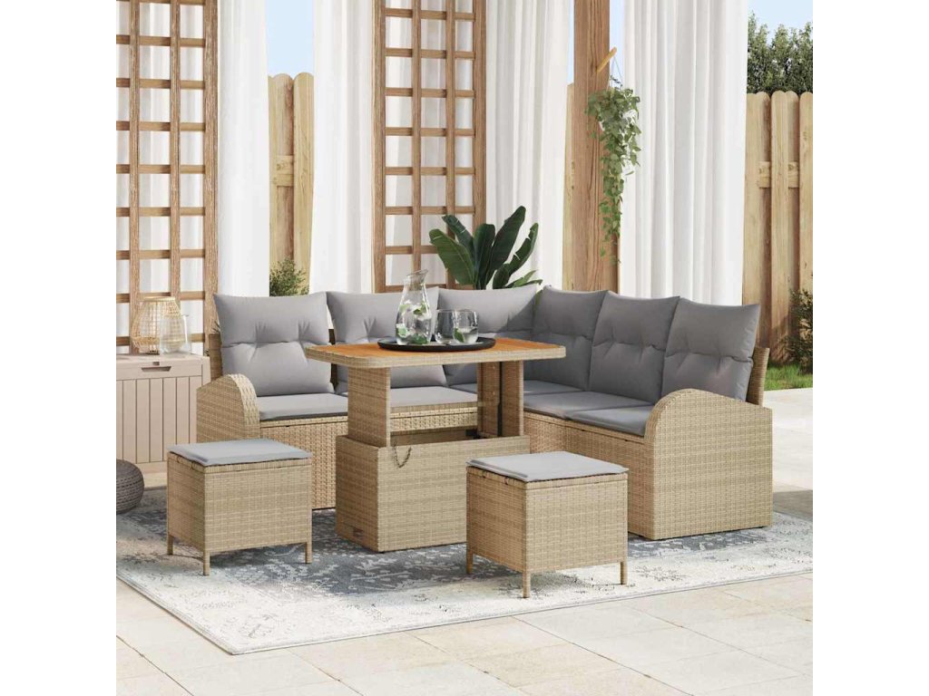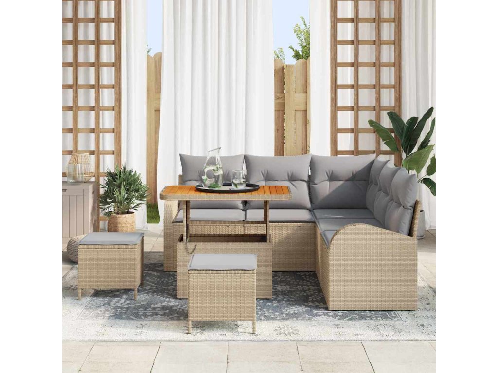 Sada zahradních pohovek s polštářem 8 pcs Béžová Poly ratan 3362397