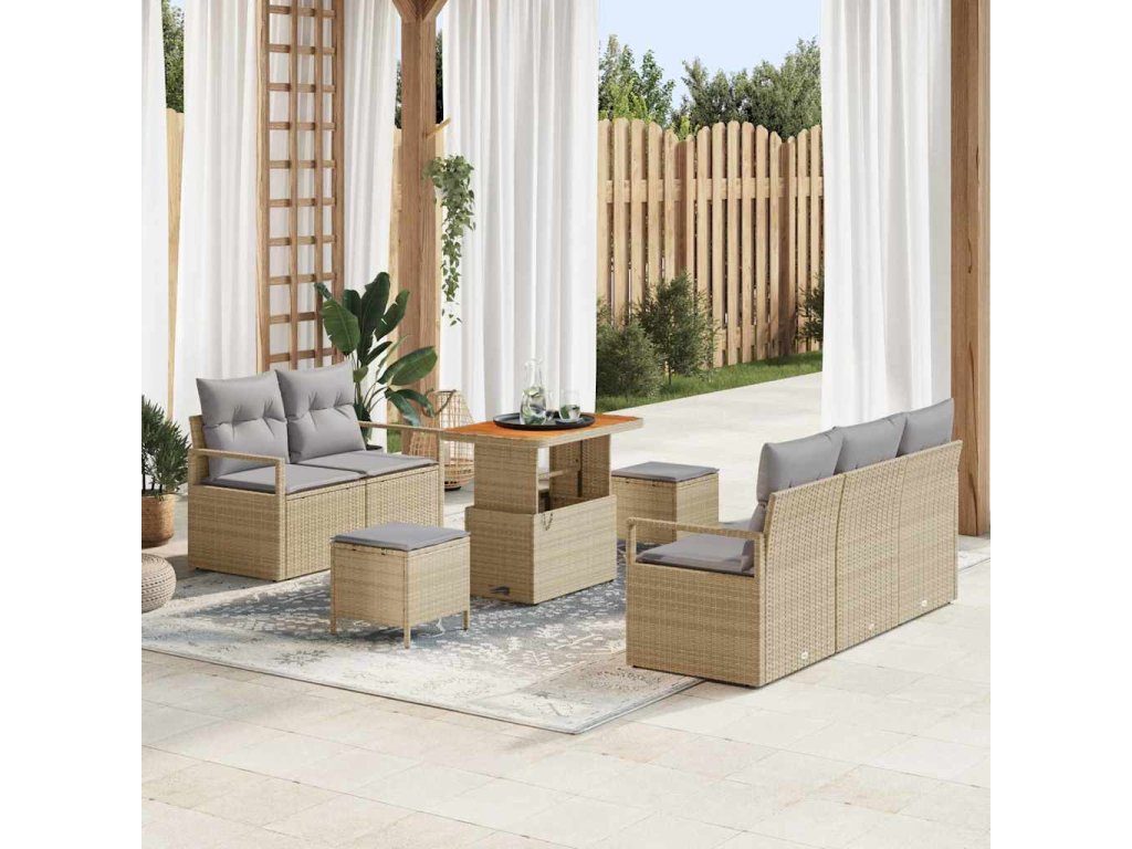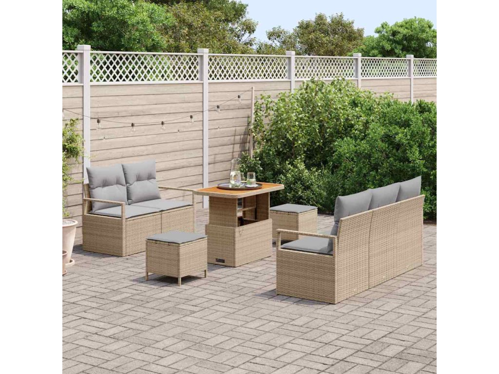 Sada zahradních pohovek s polštářem 8 pcs Béžová Poly ratan 3362472