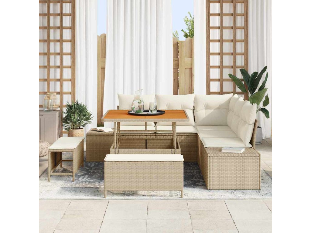 Sada zahradních pohovek s polštářem 8 pcs Béžová Poly ratan 3364726