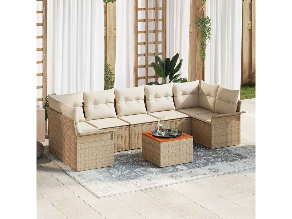 Sada zahradních pohovek s polštářem 8 pcs Béžová polyratan 3347295
