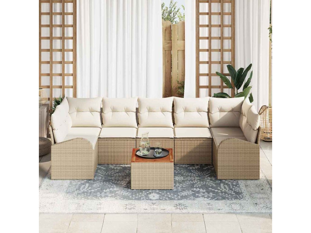 Sada zahradních pohovek s polštářem 8 pcs Béžová polyratan 3347547