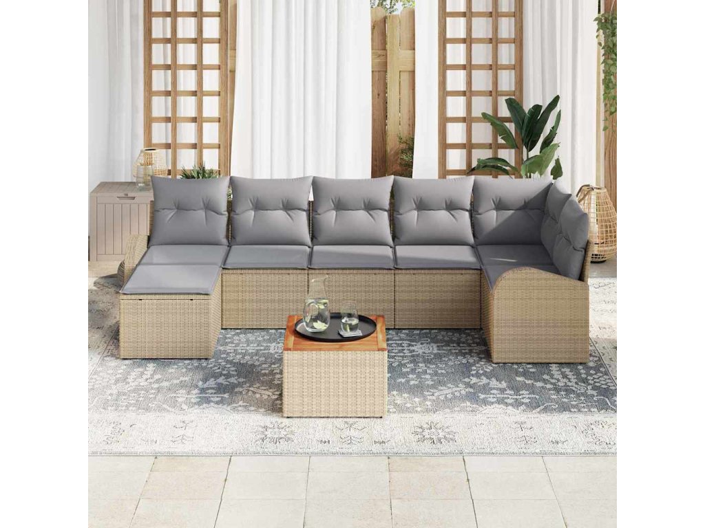 Sada zahradních pohovek s polštářem 8 pcs Béžová polyratan 3347609