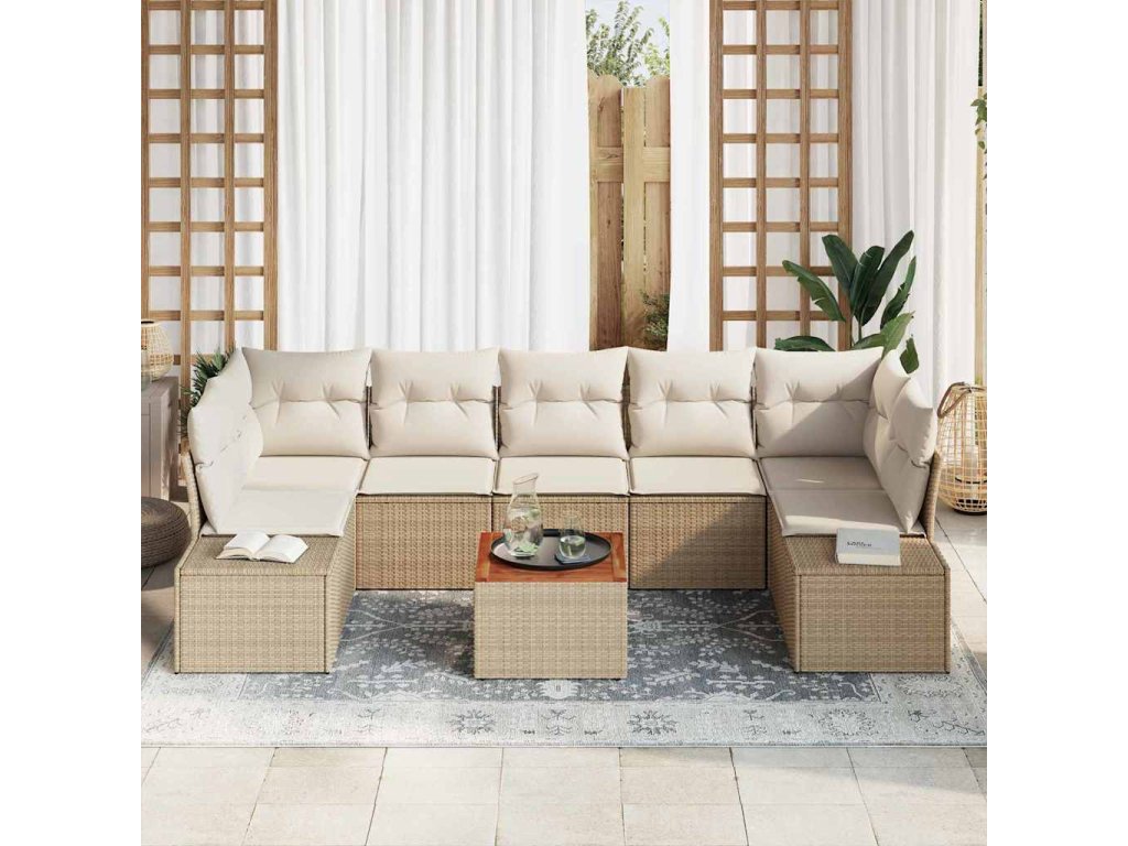 Sada zahradních pohovek s polštářem 8 pcs Béžová polyratan 3347925