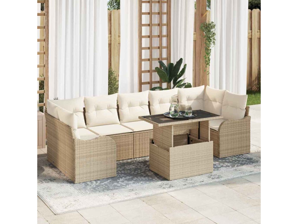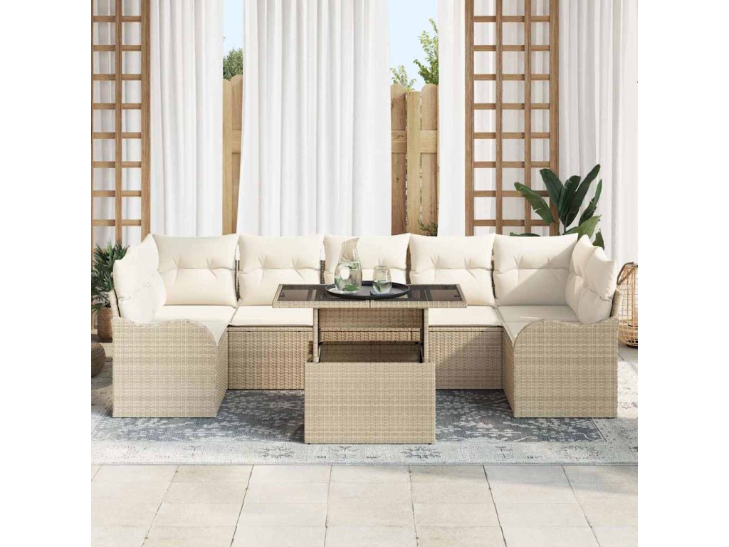 Sada zahradních pohovek s polštářem 8 pcs Béžová polyratan 3348417