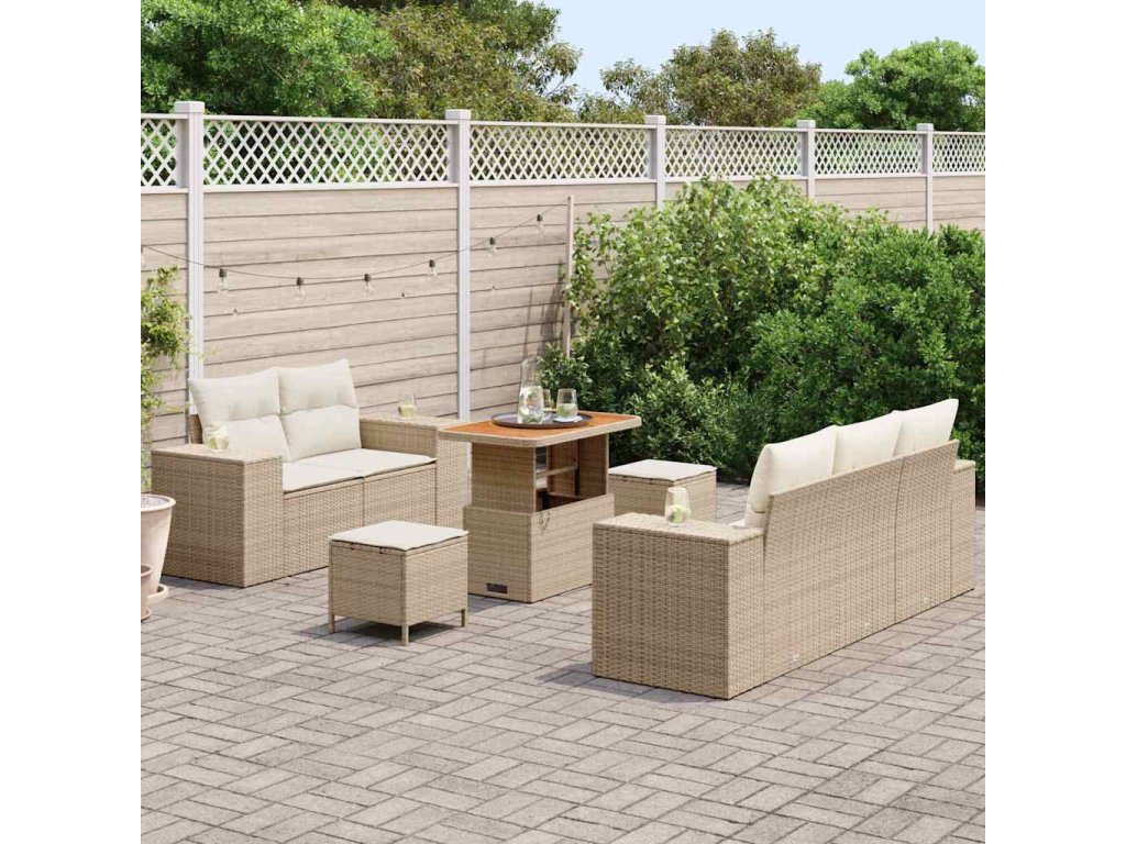 Sada zahradních pohovek s polštářem 8 pcs Béžová polyratan 3361951